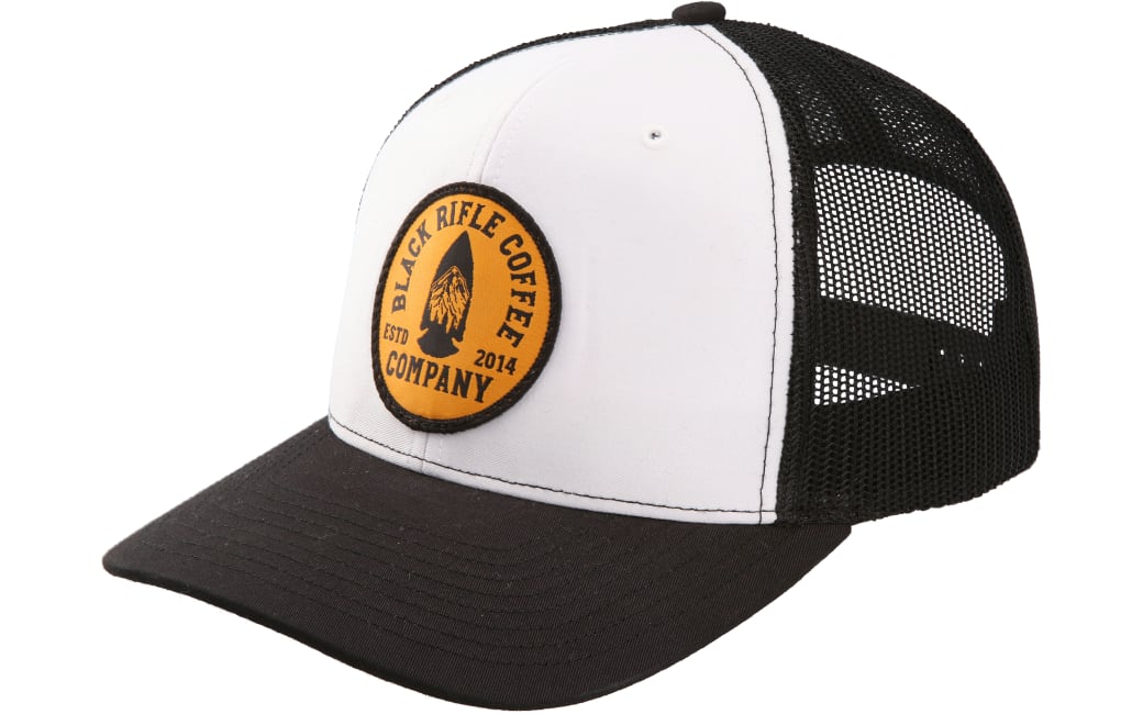 Amazon Com Black Rifle Coffee Company Established Arrowhead Gold Patch Trucker Hat Everything Else